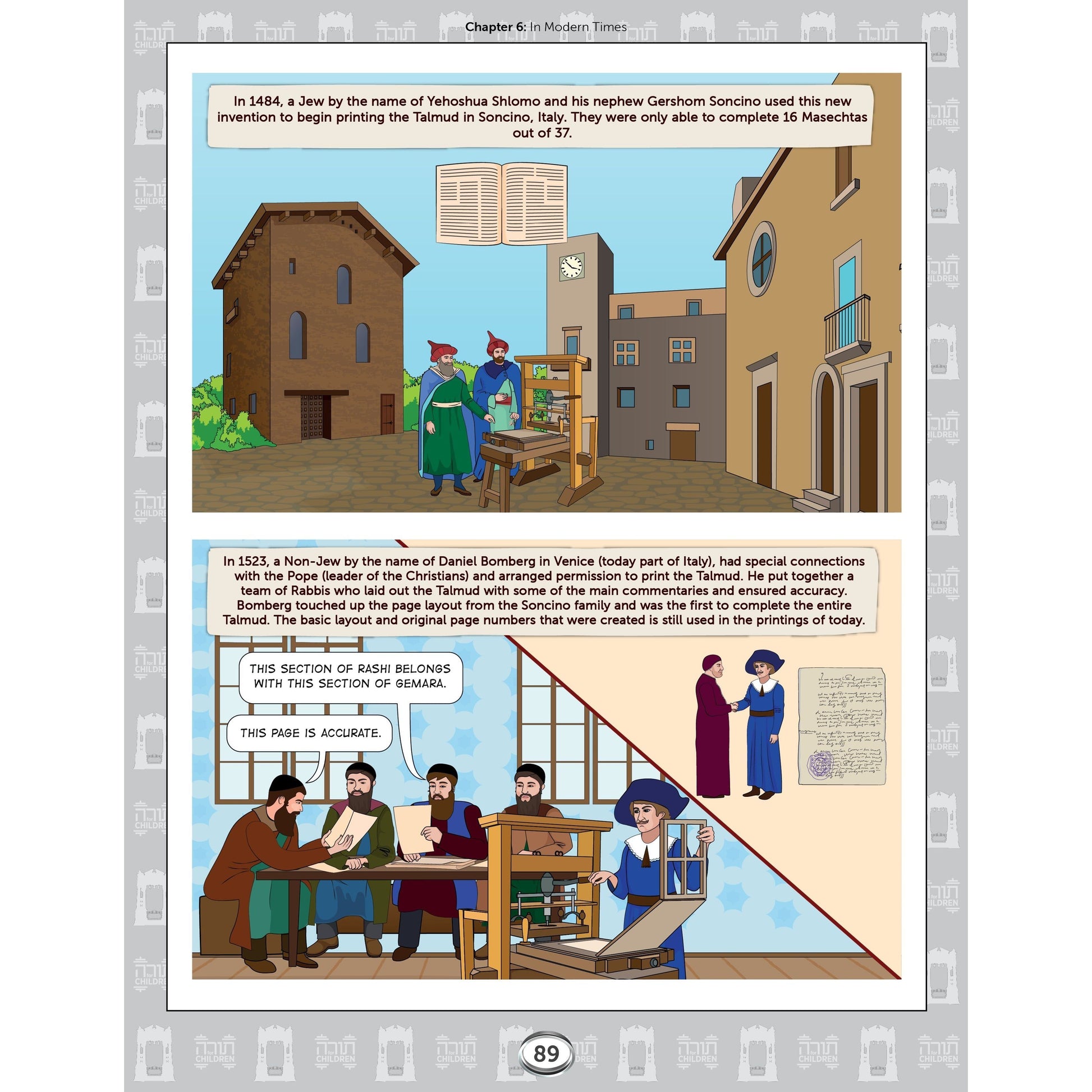 The Visual Introduction to Gemara For Young And Old is a must read for anyone who studies the Talmud. Learn how Torah Shebaal Peh developed from Har Sinai through the Sanhedrin to the circumstances leading to the recording of the Mishnah and the Gemara. Then travel on a journey through the history of the Talmud until modern times.